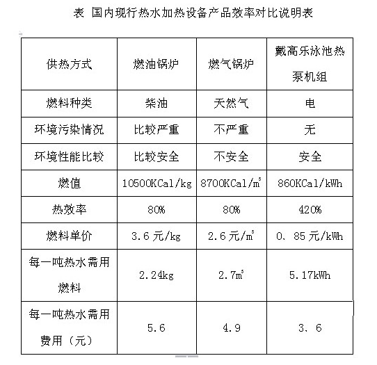 由上表可见,在燃油锅炉、燃气锅炉、铭迪泳池热泵机组这几种加热设备中,河南泳佳泳池热泵机组加热1吨水所需要的费用是最少的,使用是最经济的,效率比其它三种加热设备都高。